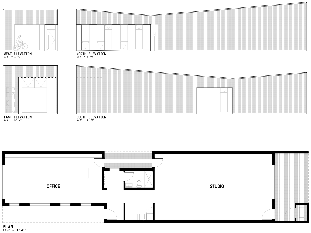 Studio / Office is study for a new office and artist studio located in Boswell, Indiana. The design of the building reflects a modern update on the vernacular and rural shed typology.